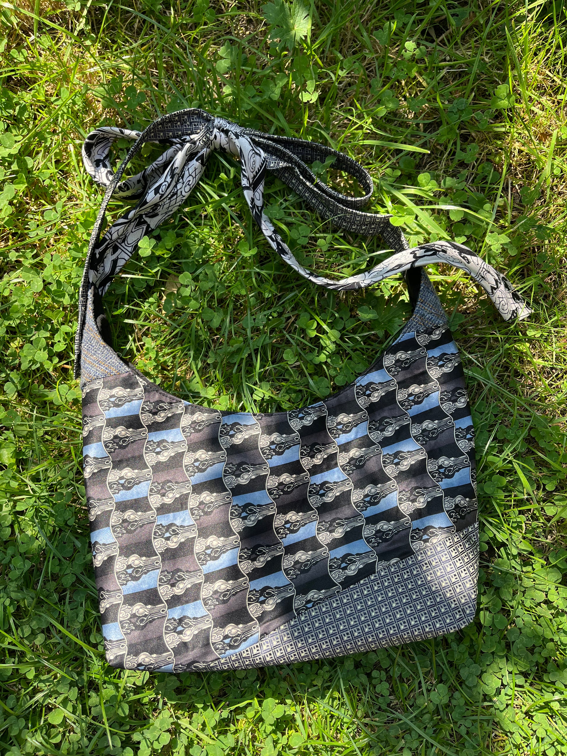 Each bag is completely one of a kind. Due to the nature of the second hand materials used, bags are sold as seen and it is recommended they are treated with care as some of the materials are delicate. Please do not machine wash or dry. Wipe clean or iron on low temp only.