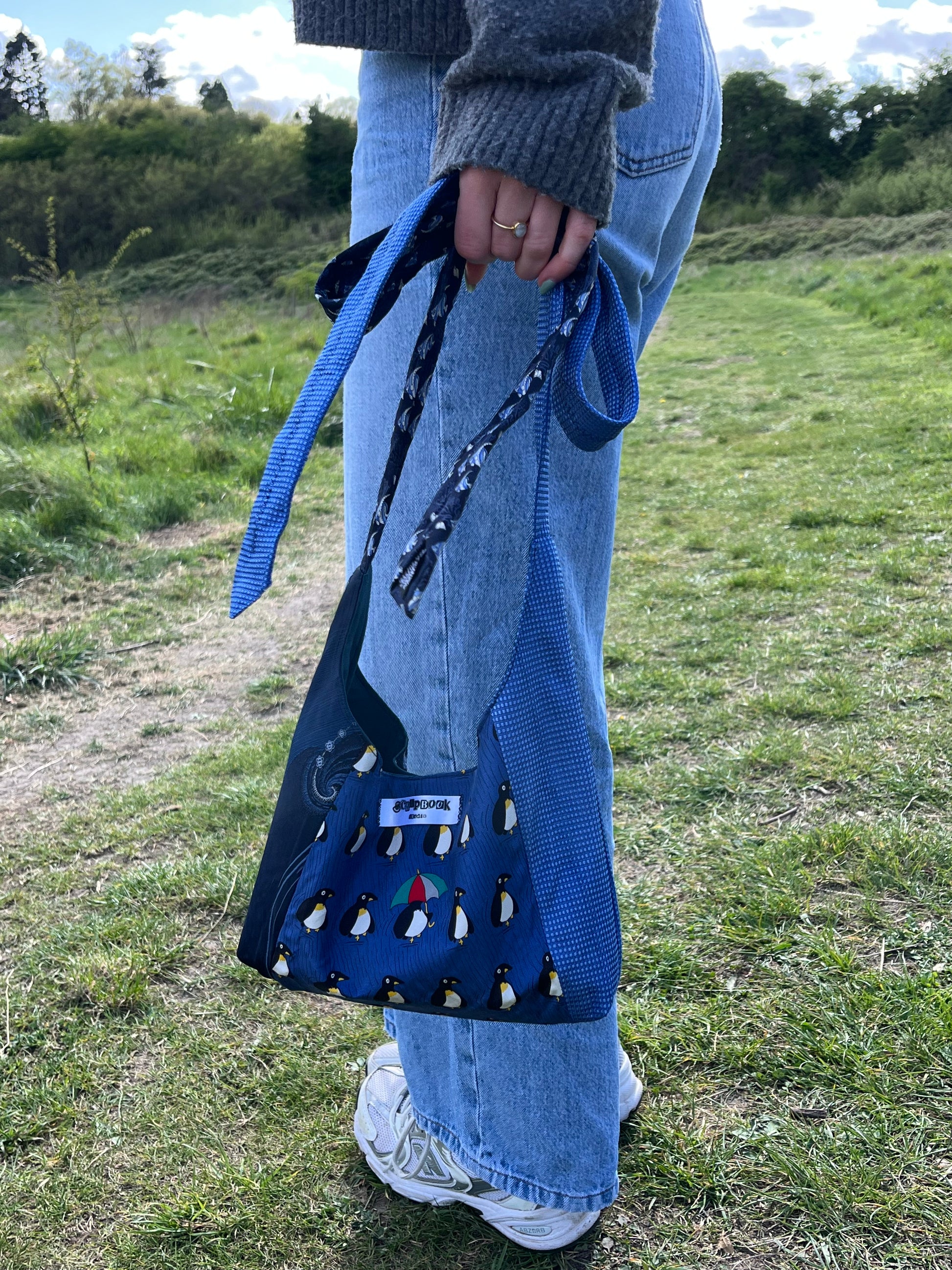 Each bag is completely one of a kind. Due to the nature of the second hand materials used, bags are sold as seen and it is recommended they are treated with care as some of the materials are delicate. Please do not machine wash or dry. Wipe clean or iron on low temp only.
